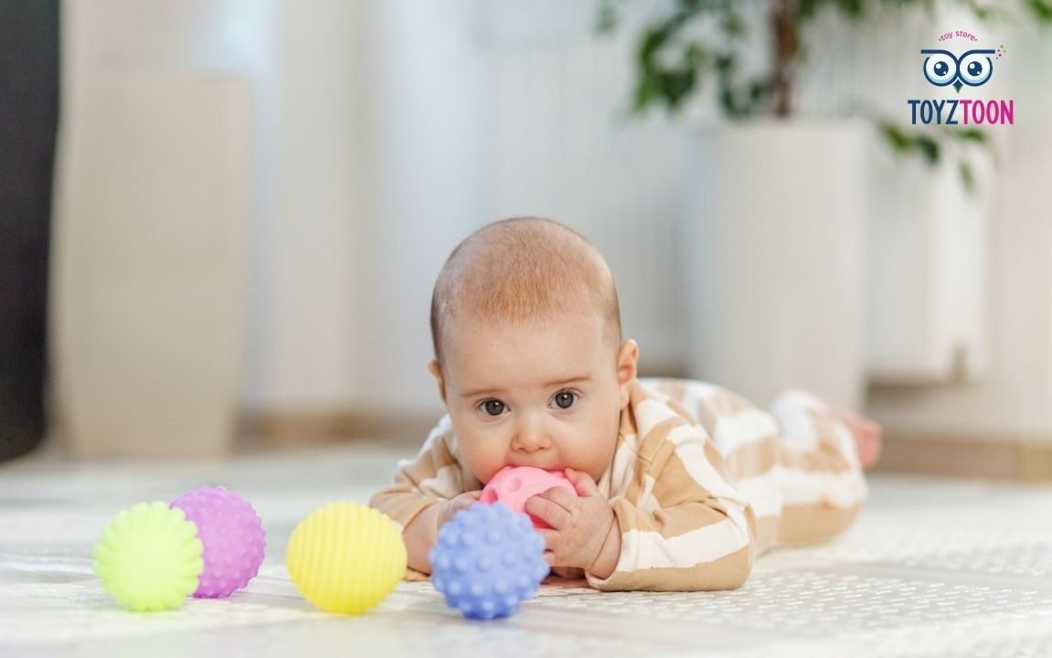 | 3–6 أشهر | عضاضات متنوعة، كرات لينة، أزرار تصدر صوت | حركي دقيق + سبب/نتيجة | تقوية القبضة والانتباه للمؤثر |