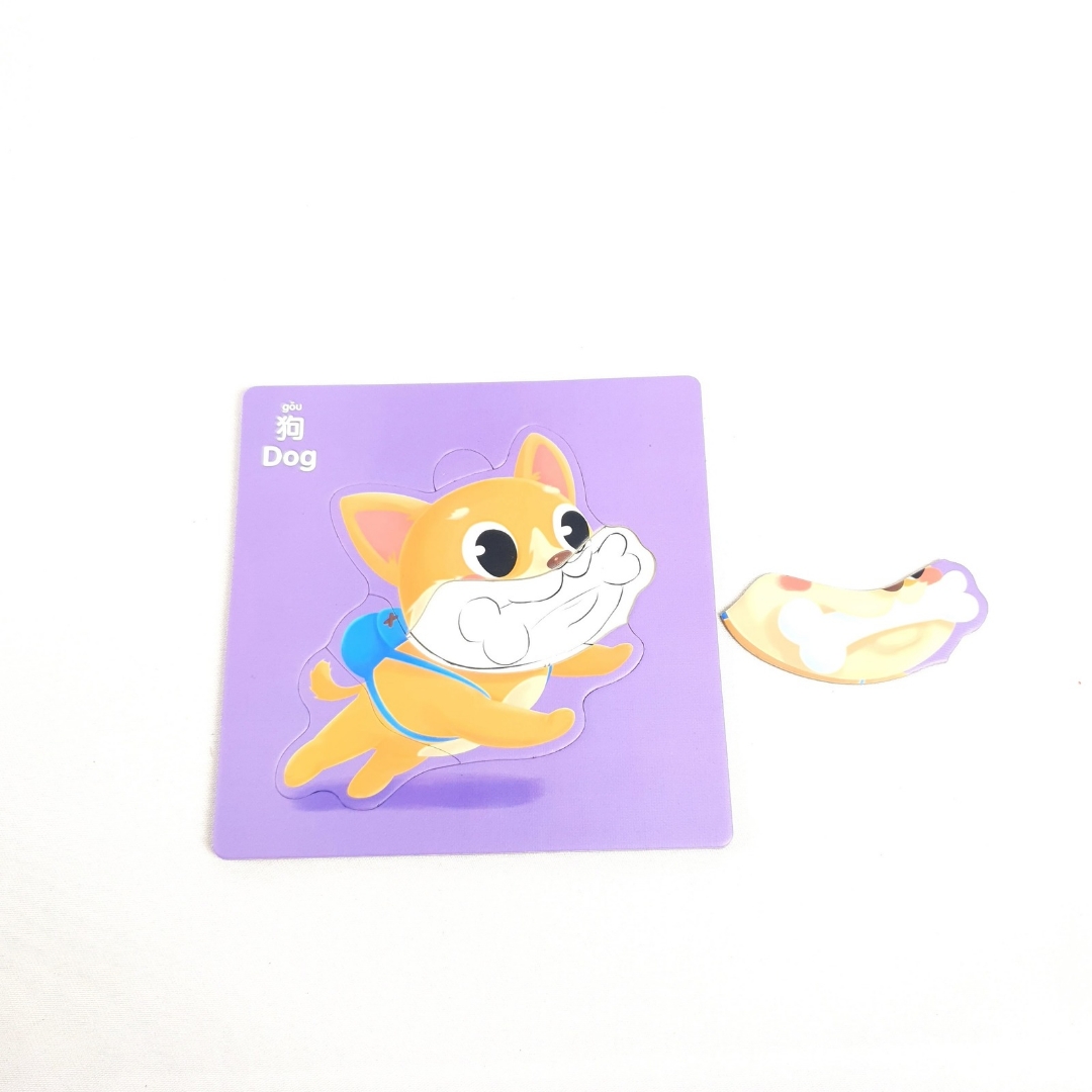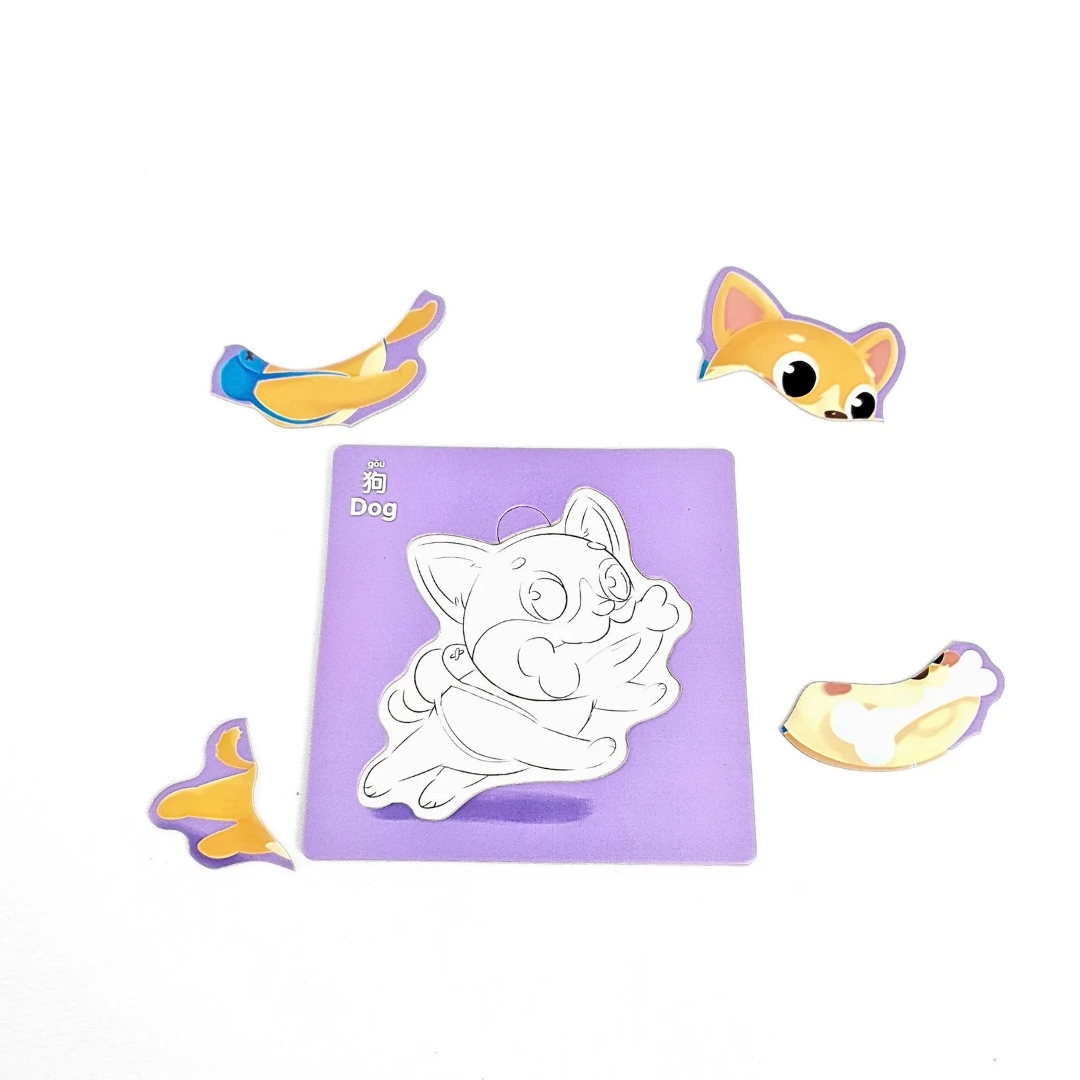 تحت كل بازل فيه الرسمة نفسها مرسومة بخطوط واضحة، والطفل يقدر يلونها بعد ما يخلّص تركيب البازل.