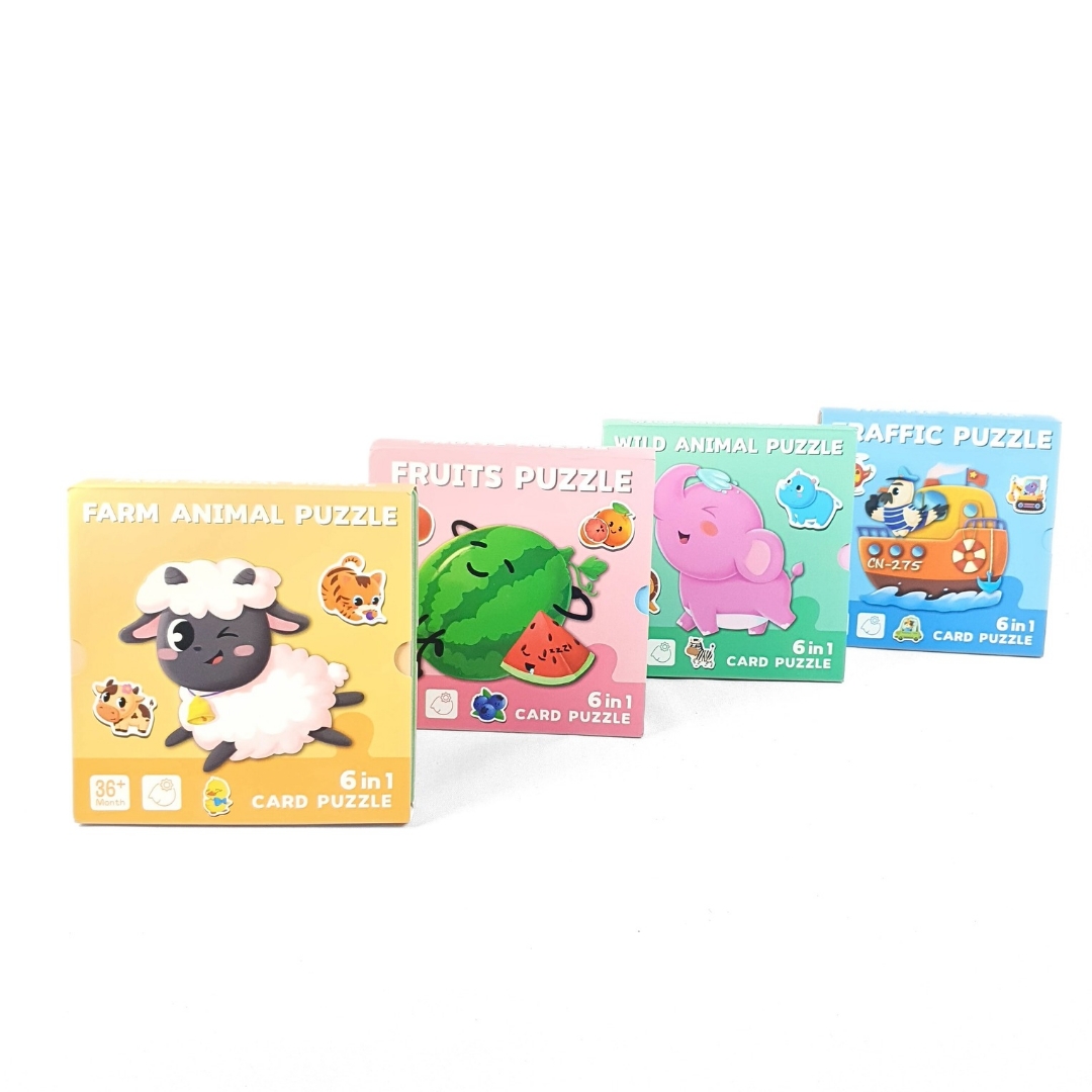 كل علبة فيها ٦ بطاقات، وكل بطاقة عبارة عن بازل مستقل.