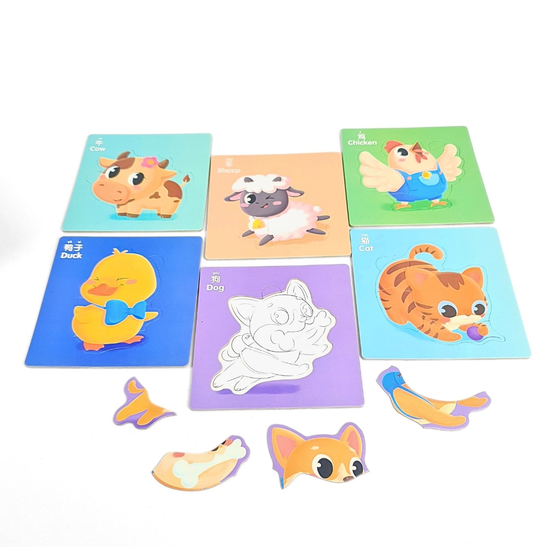 ٦ بطاقات – كل بطاقة بازل + رسمة تلوين تحتها.