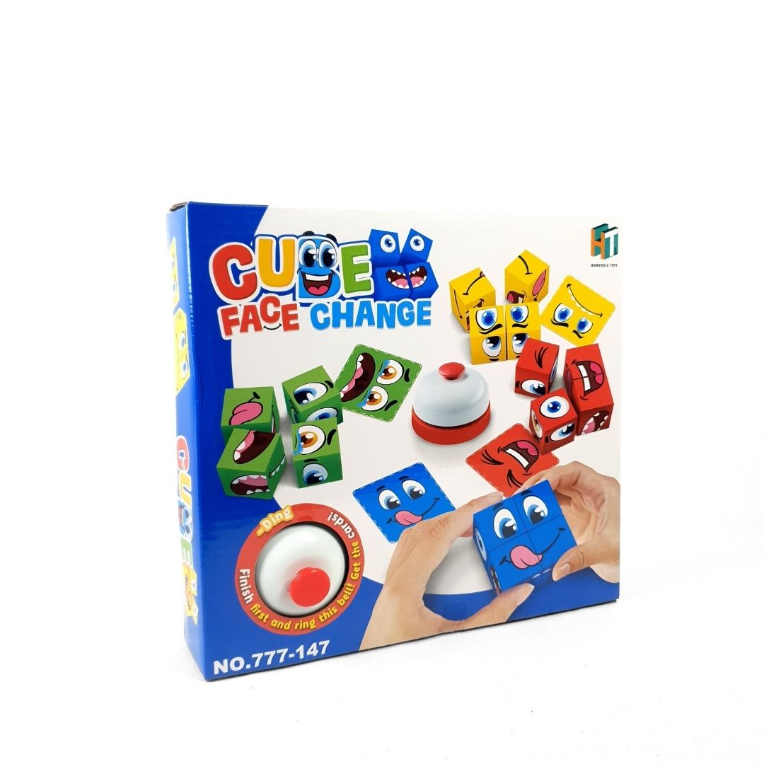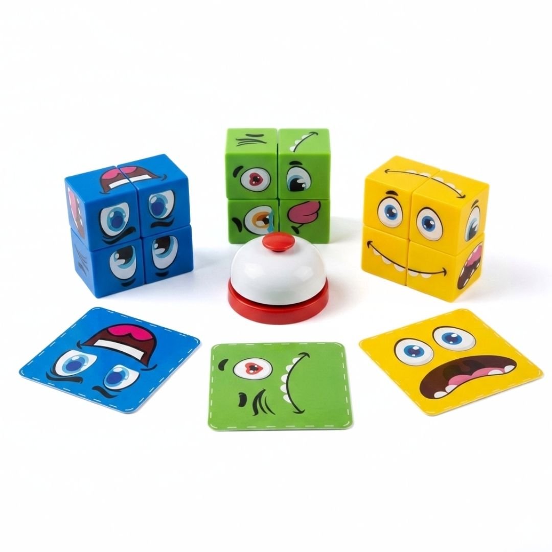 كل لاعب يلف المكعبات بسرعة ويحاول يكوّن نفس الوجه اللي على الكارت.
