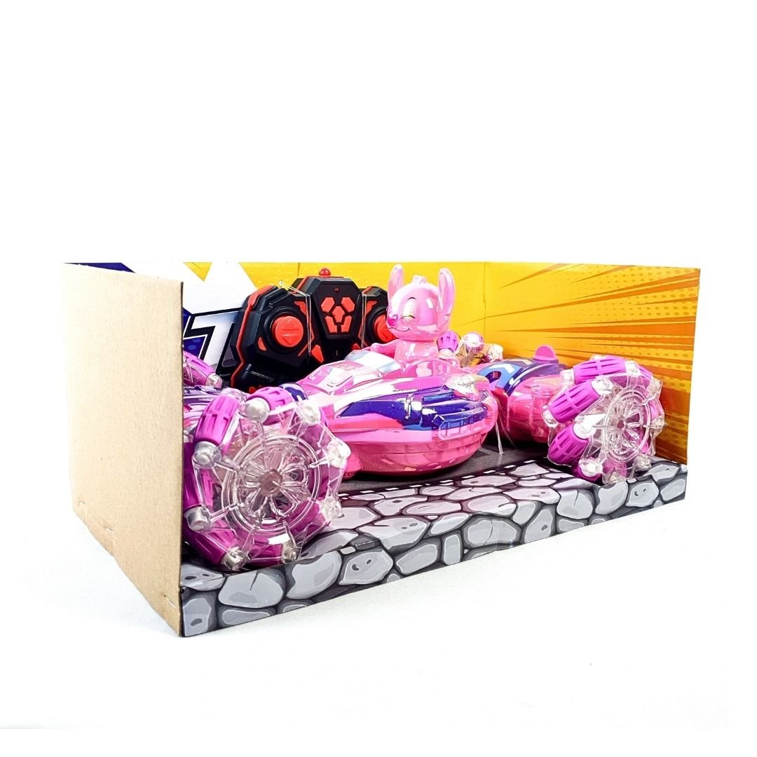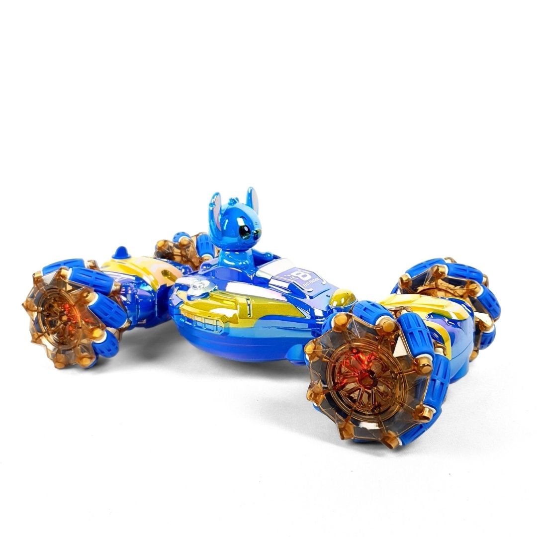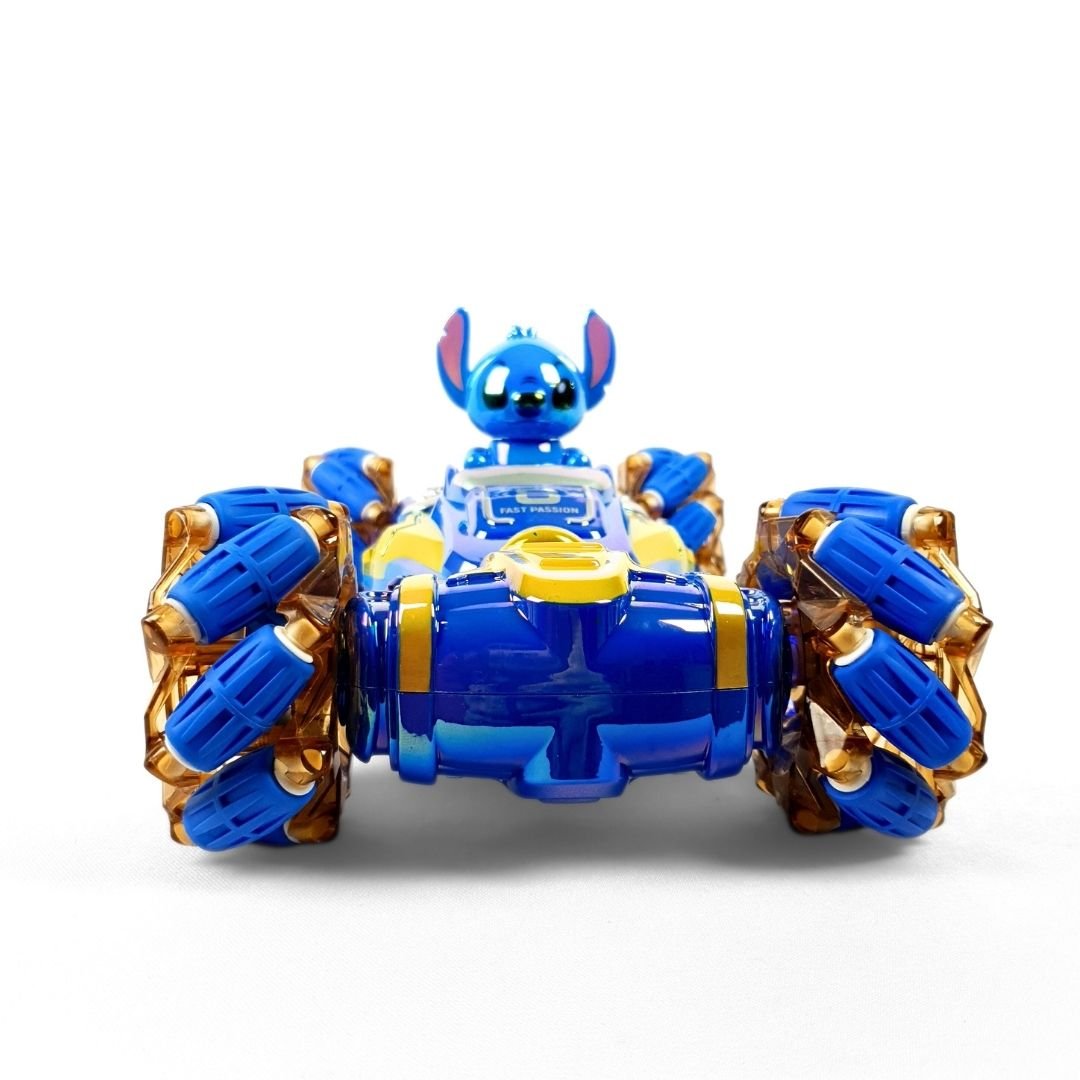 سيارة ريموت كنترول استعراضية مزودة بعجلات متعددة الاتجاهات تسمح لها بالدوران 360 درجة والحركة الجانبية بسهولة.