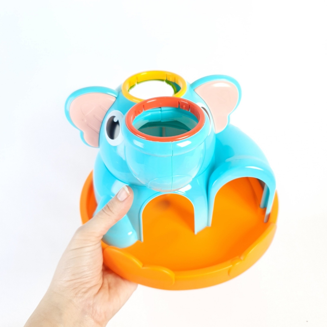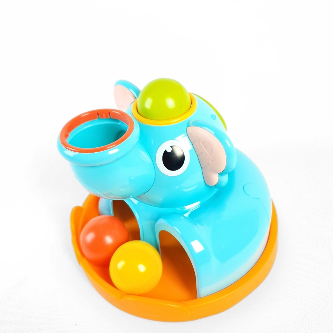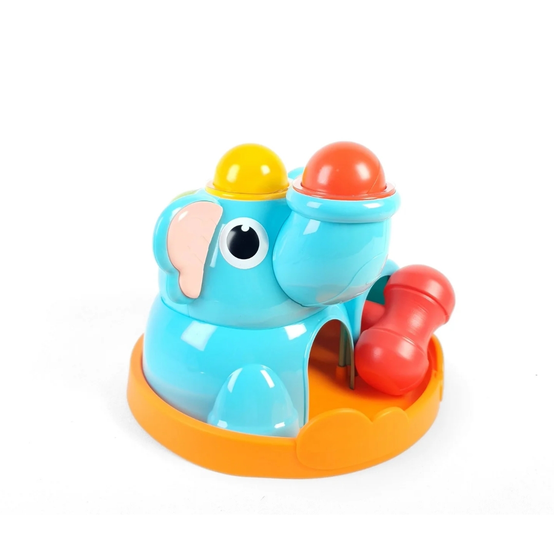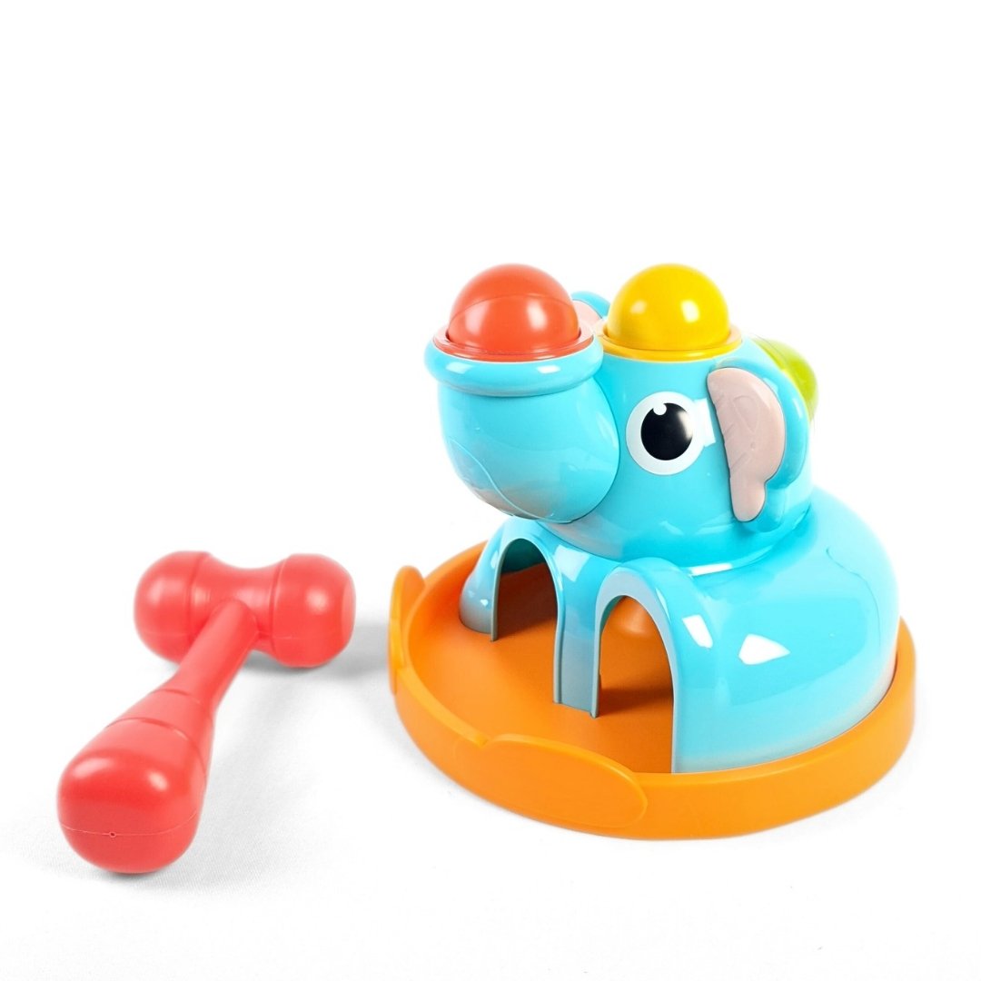 يستخدم الشاكوش ويطرق على الكرة لتنزل جوه الفيل مع صوت شخللة يعزز التفاعل.
