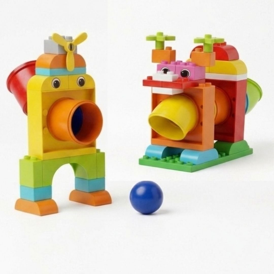 تتيح للطفل إنشاء أشكال متعددة وتجربة حركة الكرة داخل الأنابيب حسب التصميم الذي قام ببنائه.