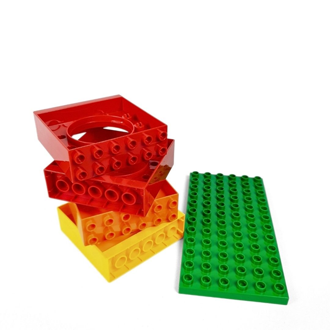 يبدأ الطفل بتركيب القاعدة والمكعبات