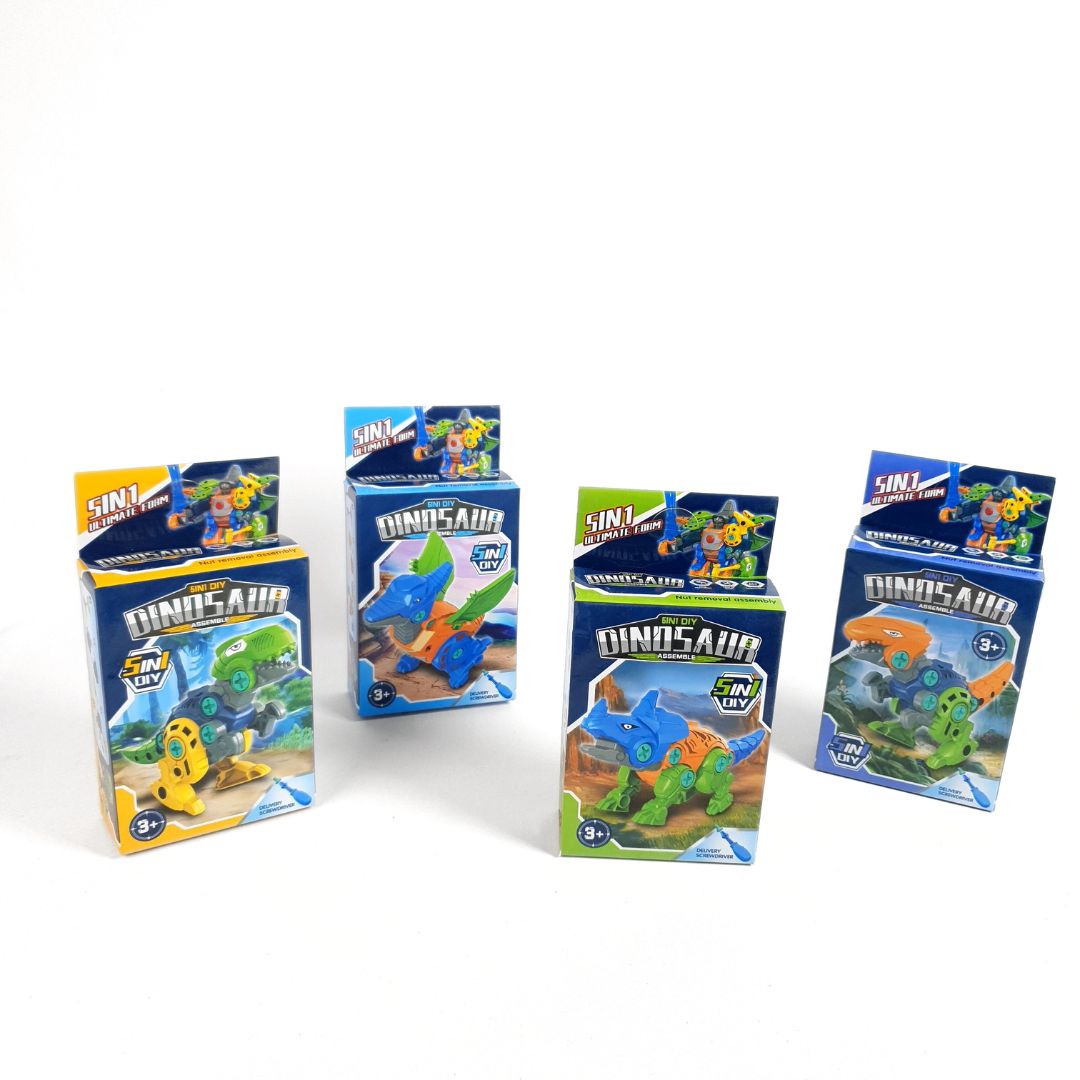 قطع ديناصور بلاستيك ملونة قابلة للفك والتركيب.